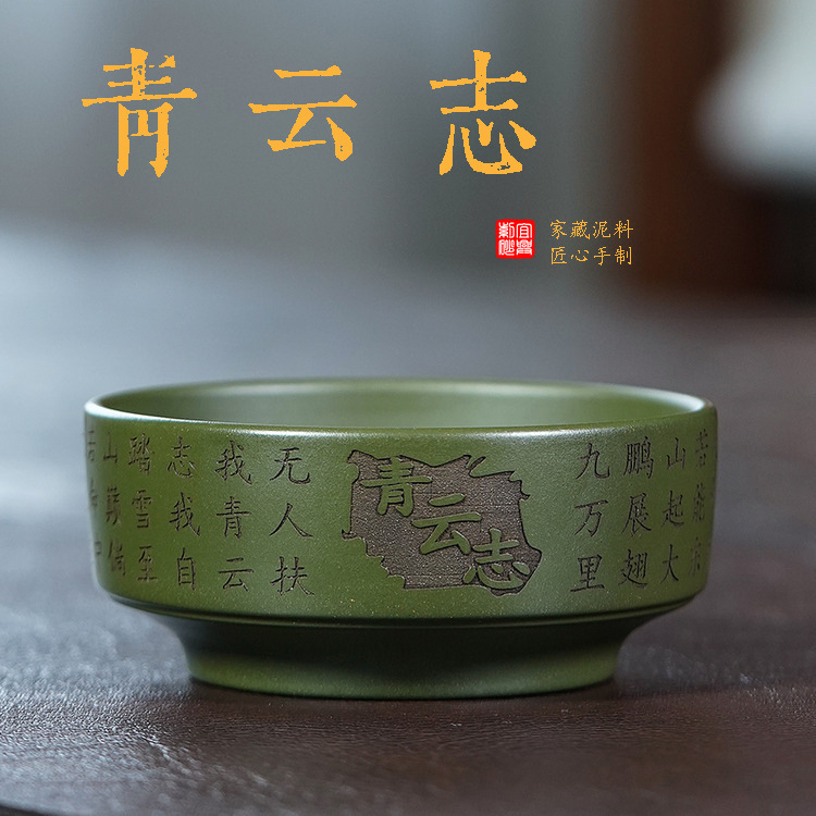 壺芝宴宜興紫砂手彫り青雲志像緑泥彫り精品主人杯茶室