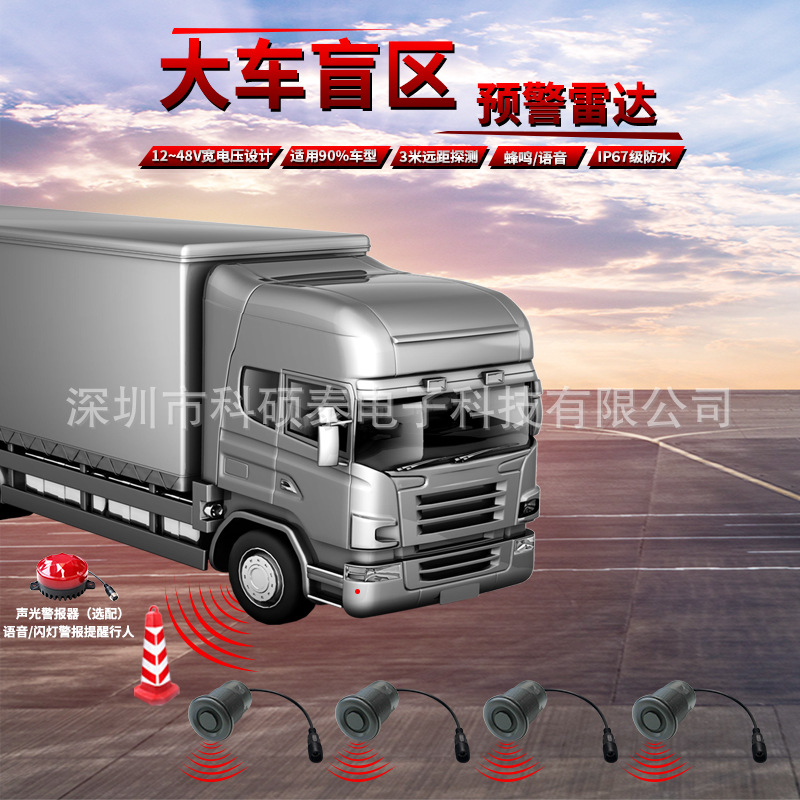 トラック右側死角レーダー三日月音声/ブザー/静音調整大型トラック4探前バックレーダー