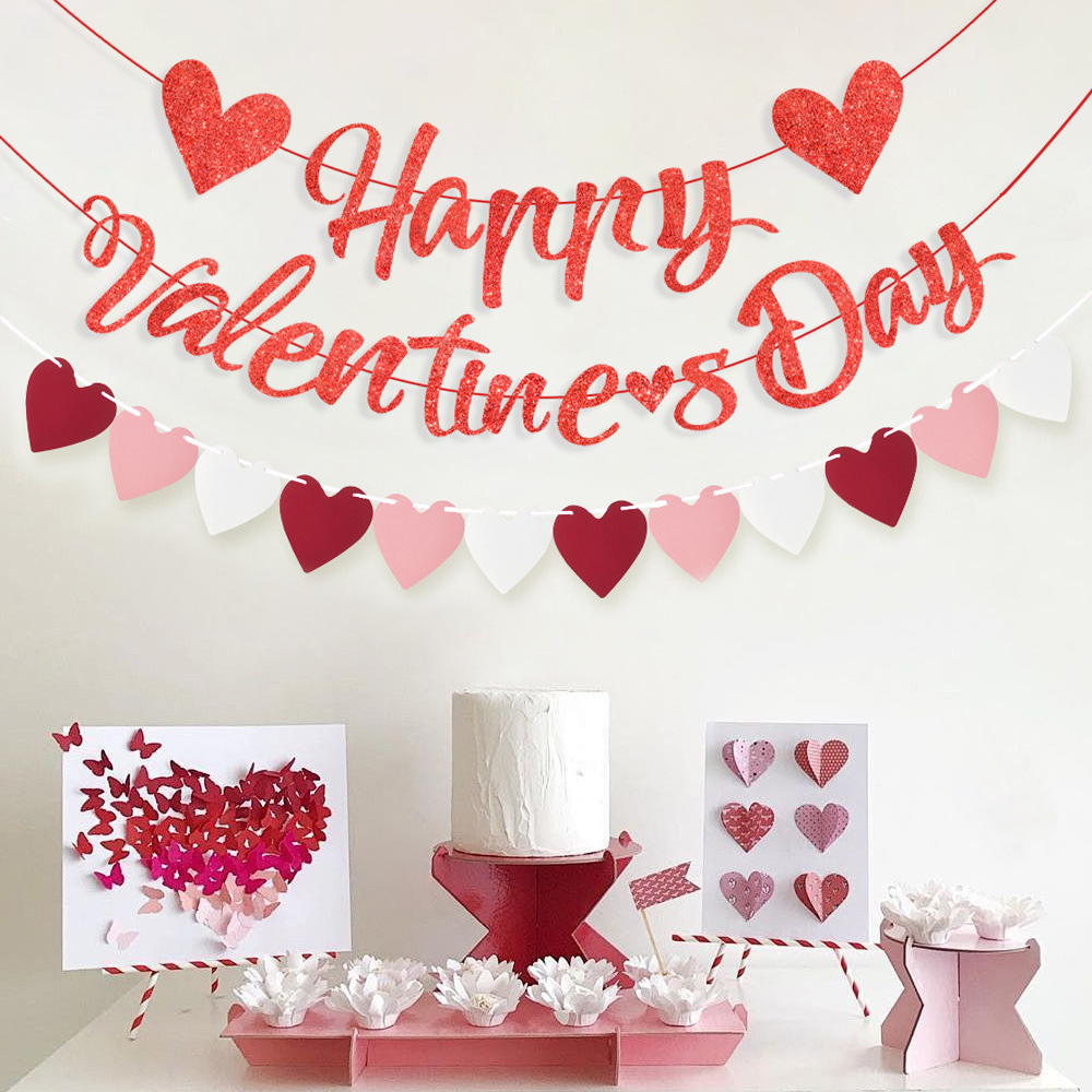 跨境情人节爱心派对拉旗横幅XO车缝拉花螺旋吊饰纸花球布置派对