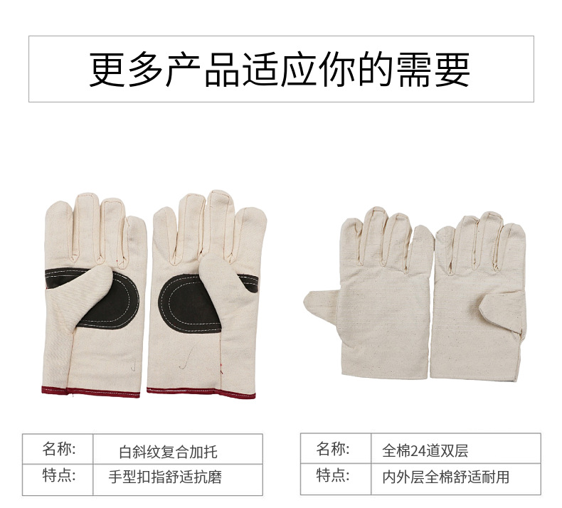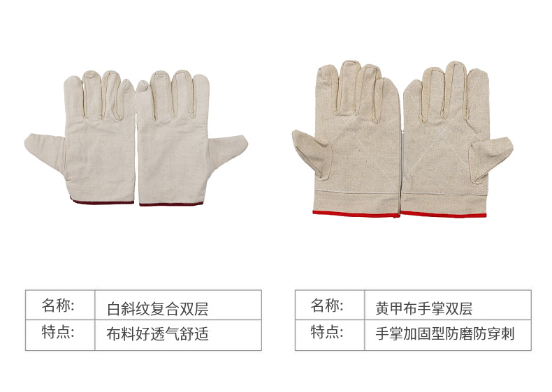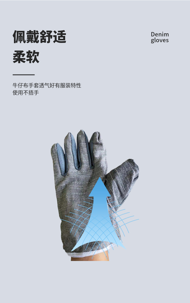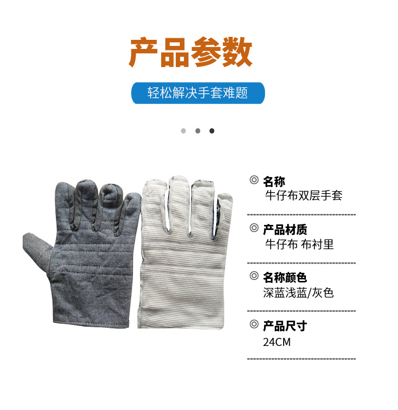 温馨提示:根据所用布料的差别,牛仔布手套分为A、B两个规格