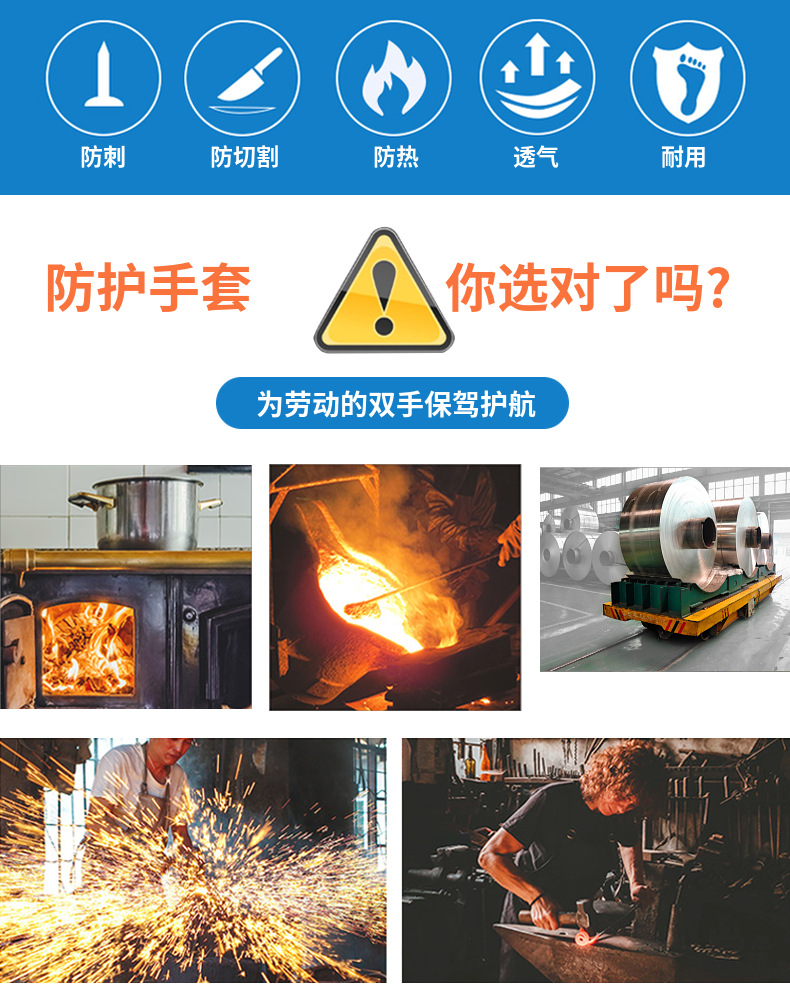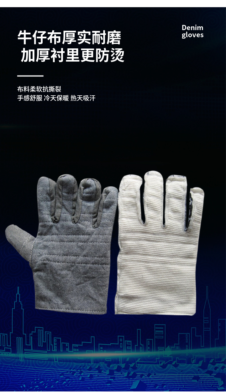 デニム二重手袋キャンバス手袋スチール搬送机械制造断热耐摩耗性とげ付きコットングローブ