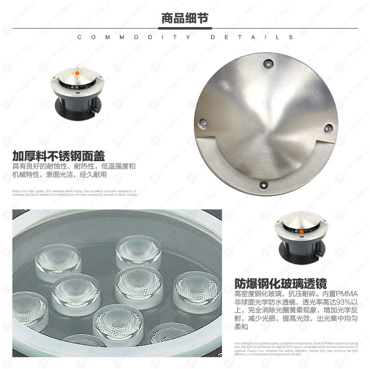 IP68ステンレス水中埋込灯屋外防水LED地灯超低超薄防眩し高顕指埋込灯