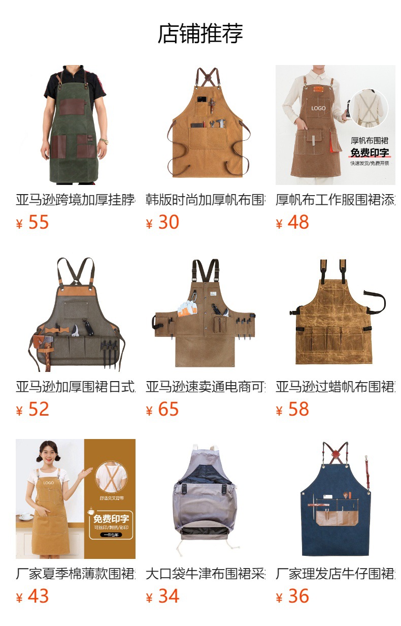 アマゾンクロスボーダーキャンバスエプロン綿オーダーメードロゴカフェ理髪師作業服エプロンメーカー卸売り