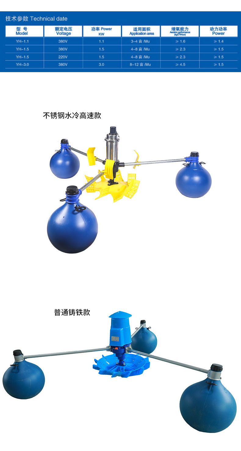 葉輪式魚池曝気装置、魚池・池用曝気ポンプ、養殖用大型浮上式ポンプ、エビ池用酸素供給機