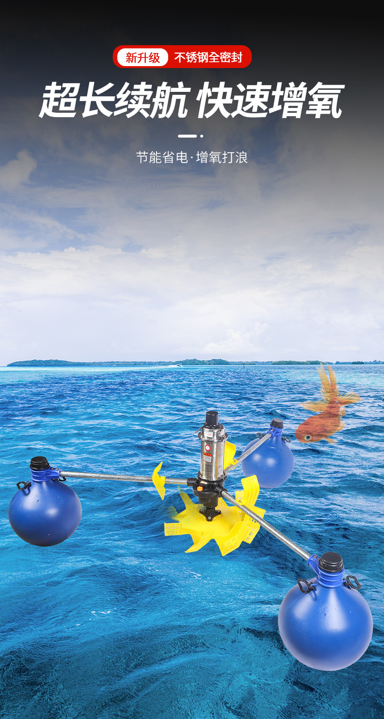 空気能魚池増酸素機曝気浮水式大型池魚池エビ池海水養殖魚池増酸素ポンプ