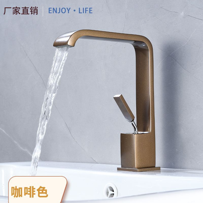 クロスボーダー真鍮滝型洗面器蛇口家庭用バスルームカウンター洗面器洗面器ホットとコールドシングルホール