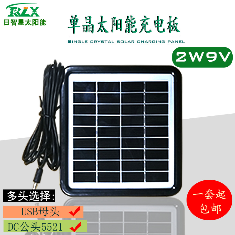 ソーラーパネル単結晶2W9V3W6V光板黒色プラスチックフレーム小型システムdcヘッドUSBメス