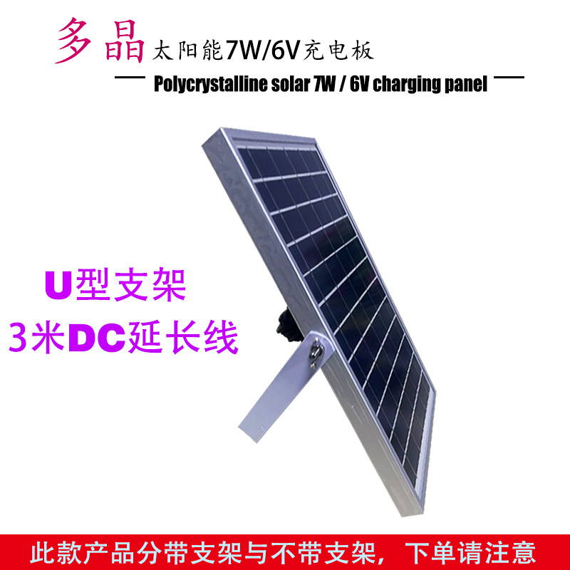 単結晶ソーラーパネル7W6Vブラケット3メートルdc 5521線光伏板充電3.2v3.7v街灯投光器