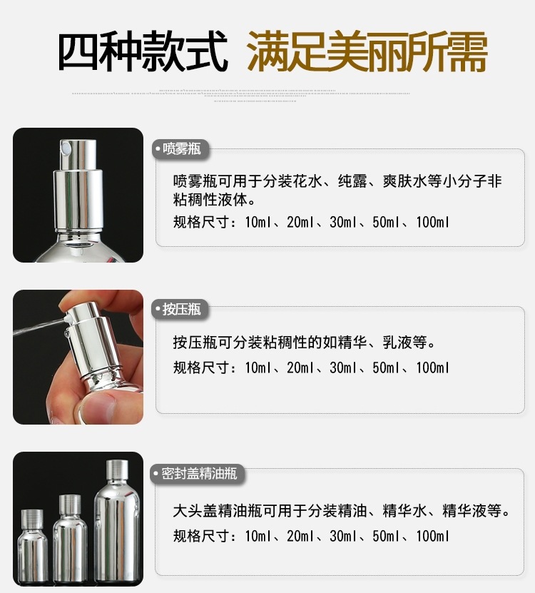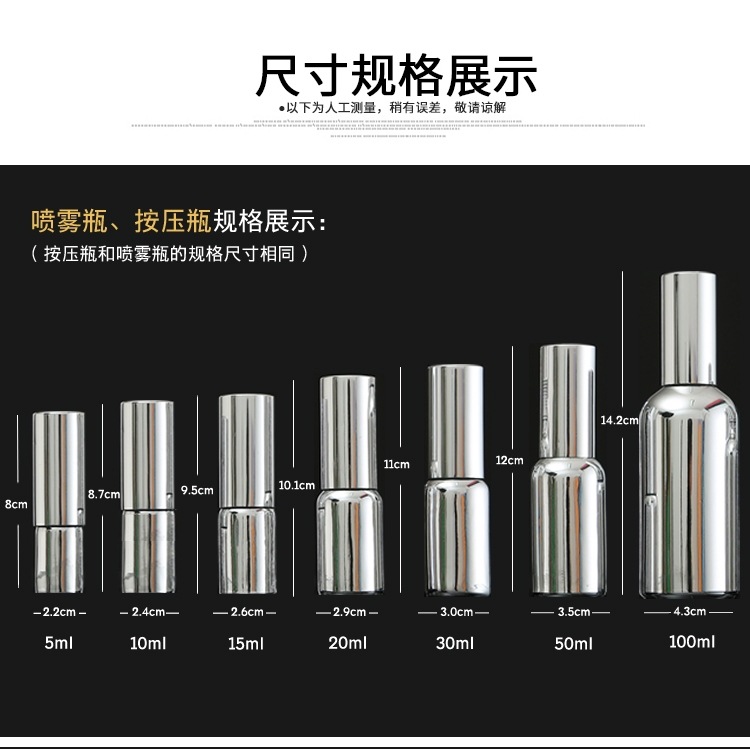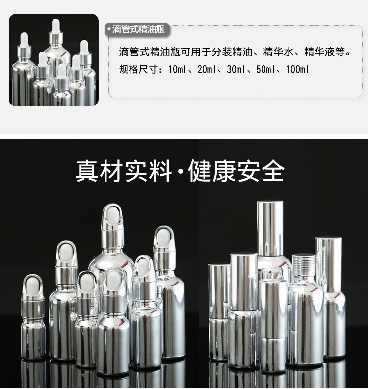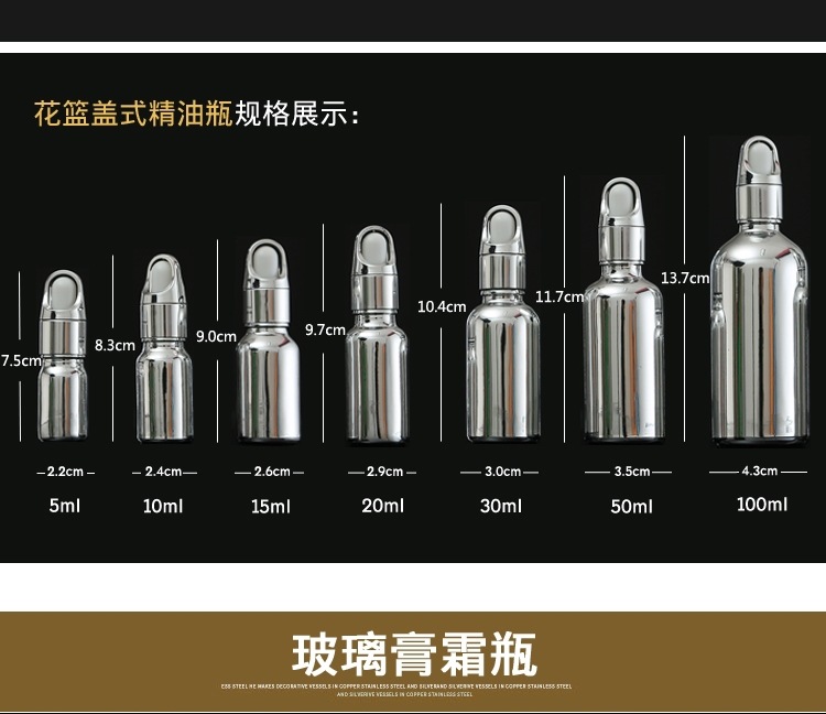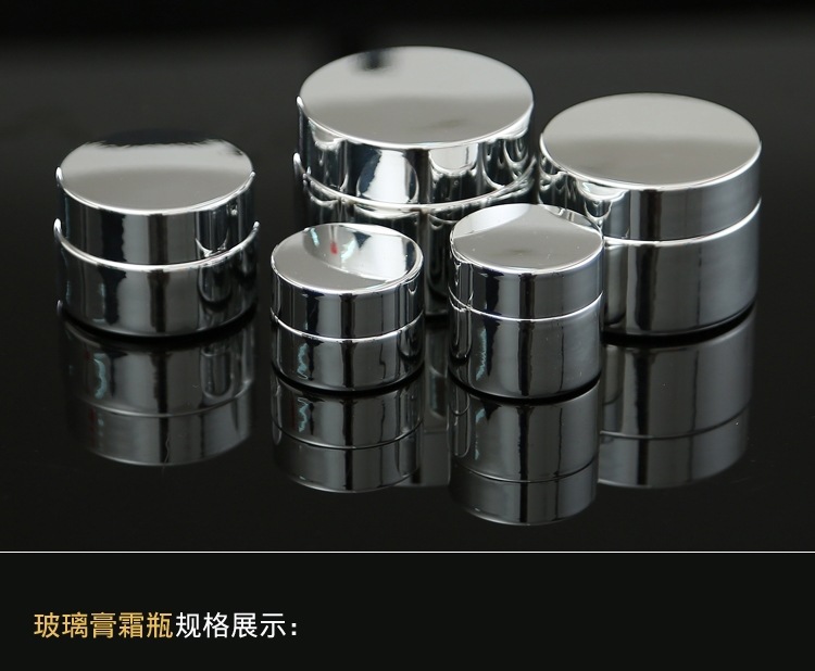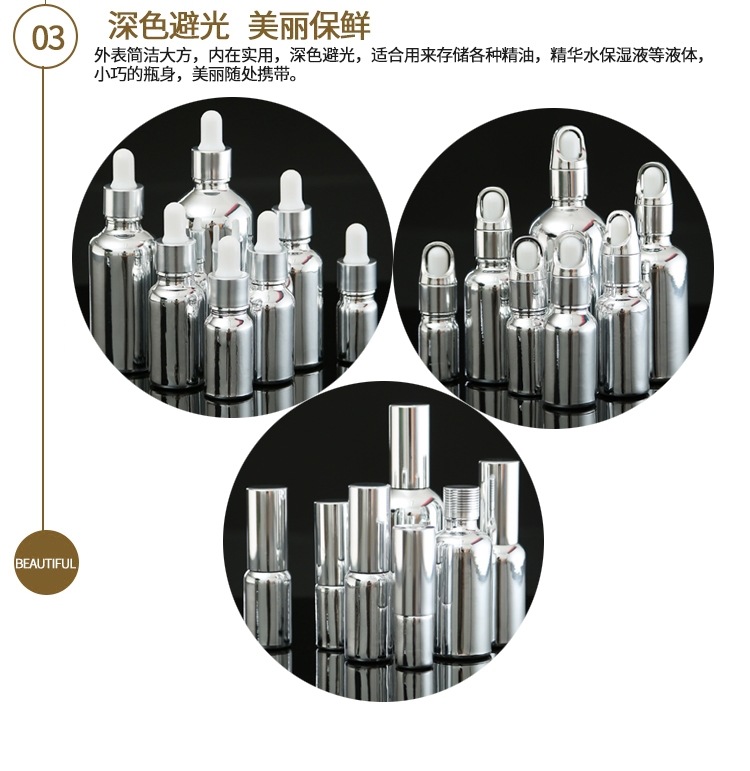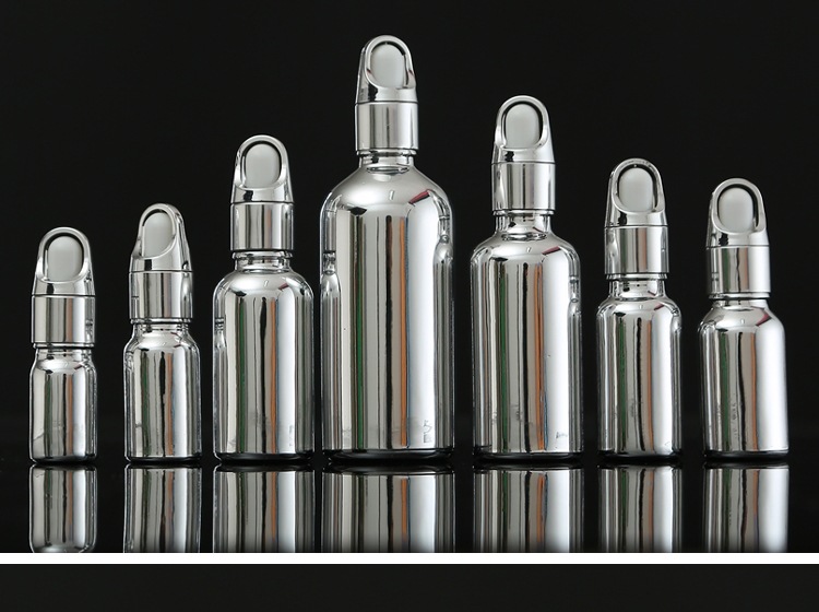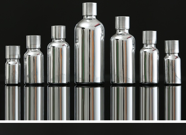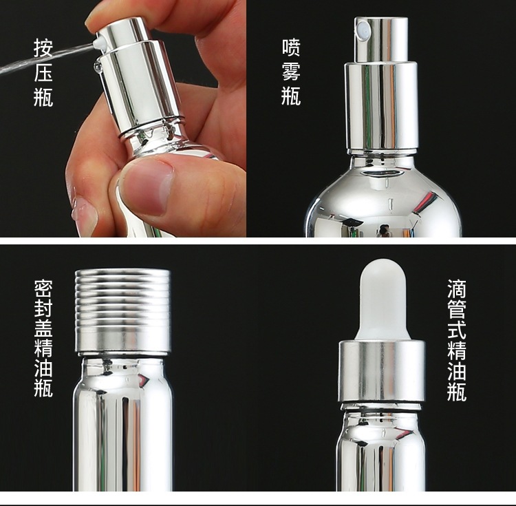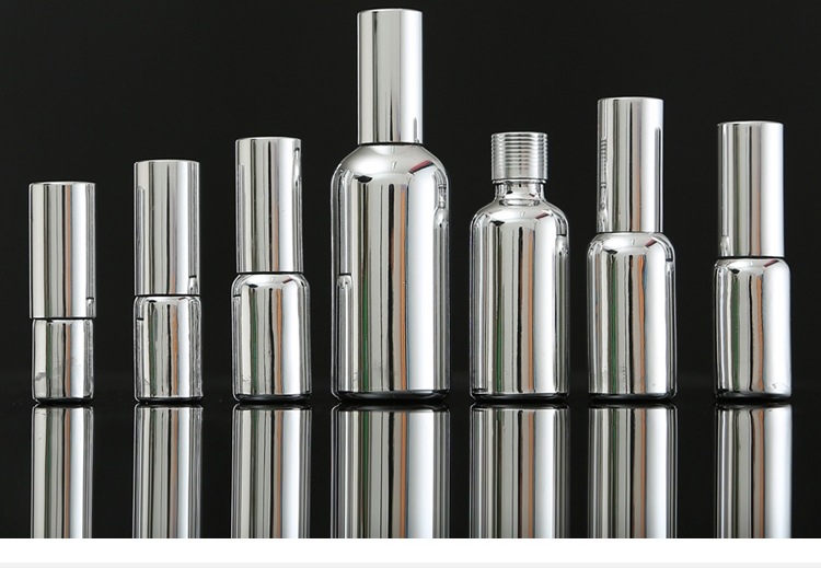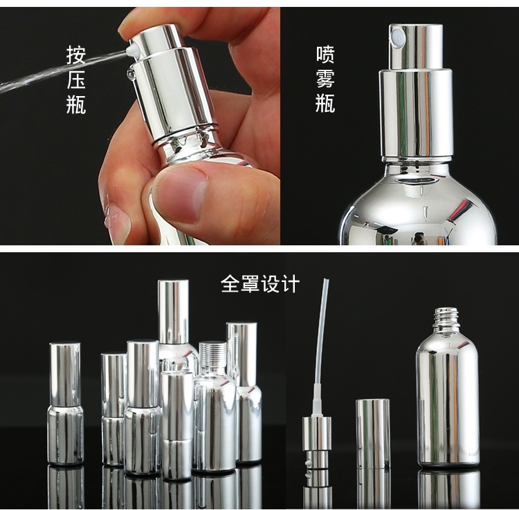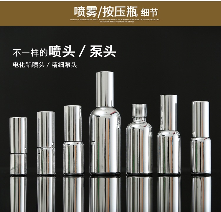 卸売りメッキ銀色化粧品分注瓶ガラス精油瓶乳液押しスプレー瓶クリーム瓶空瓶