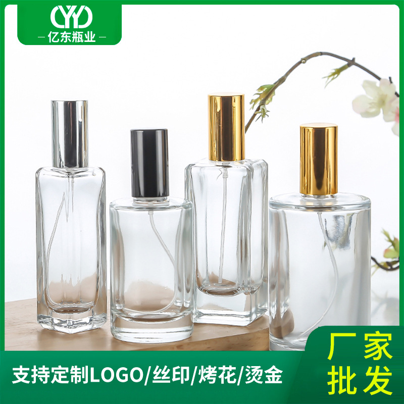 クリエイティブガラス香水瓶扁方透明化粧品分注瓶50mlスプレー空瓶産地供給源
