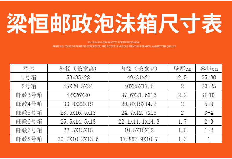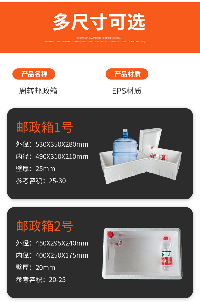 仕様とモデル ボックス No. 1 12 個 53*35*28;EPS,ボックス No. 2 12 個 45*30*24;EPS,3号箱12個; EPS,4 箱に 16 個入り; EPS,5号箱24個; EPS,6号箱 36個入り; EPS,7 箱に 48 個の EPS;,8号箱 64個; EPS