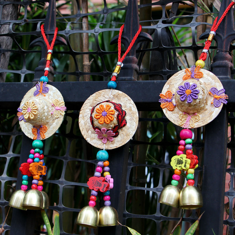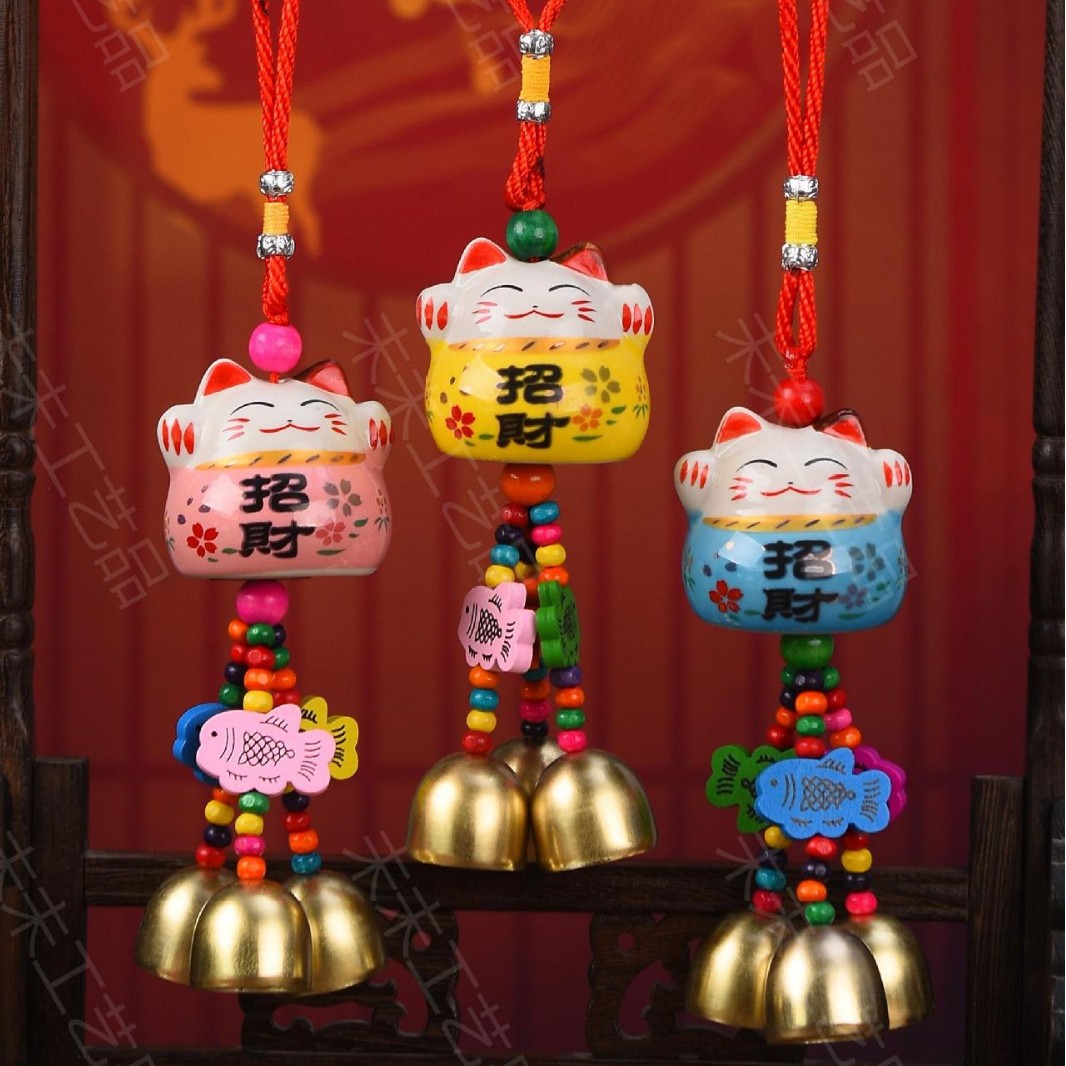 【说明】:陶瓷、木鱼 木珠、金色风铃等搭配组合而成