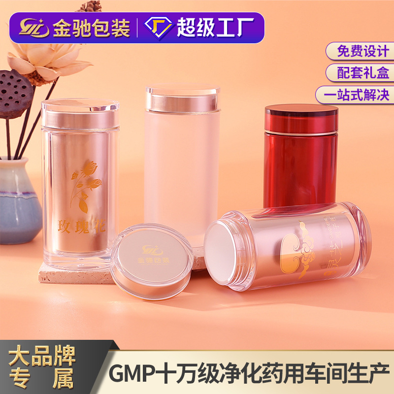 大型アクリルボトル、健康食品ボトル、薬瓶、缶詰、カプセルボトル、白きくらげ包装、プラスチック缶、健康食品