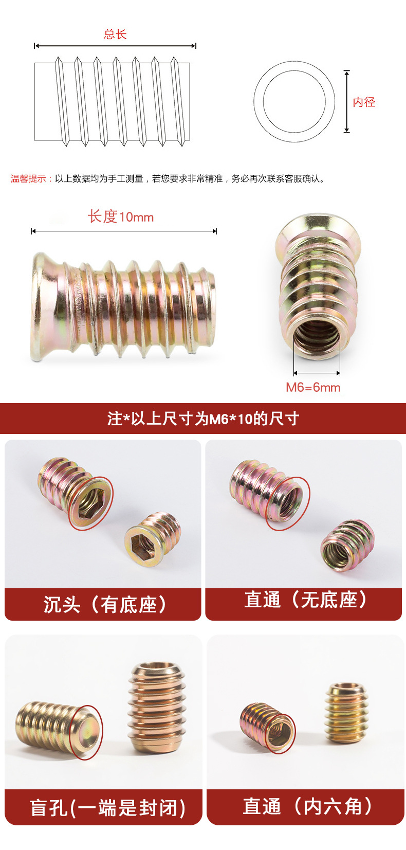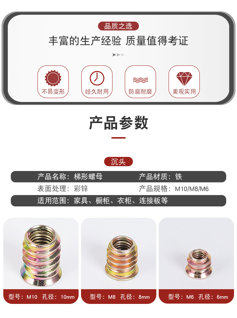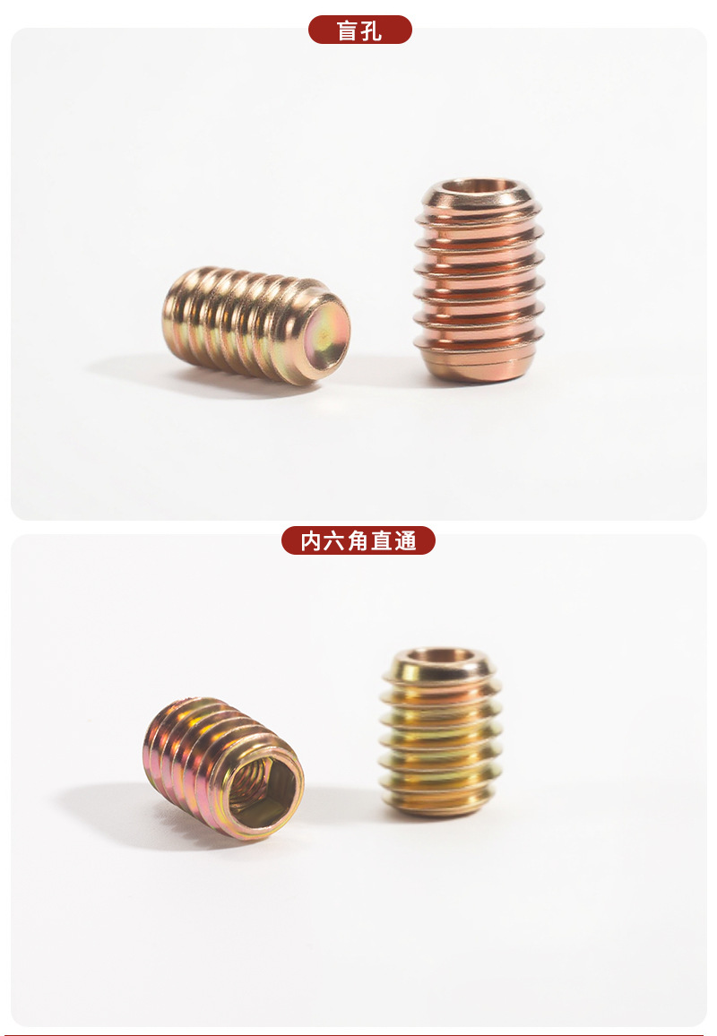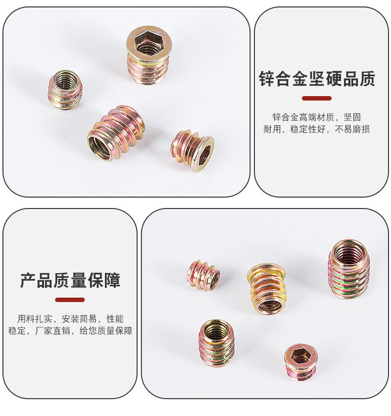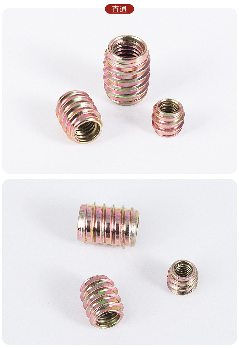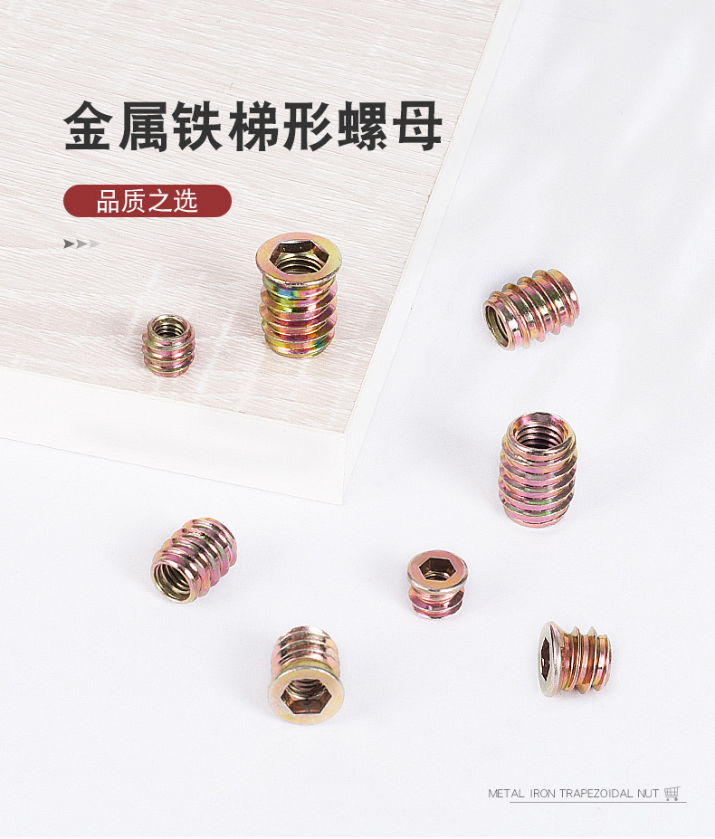 汇尔五金配件直通内六角螺母 带介预埋梯形螺母 沉头铁内外牙螺母