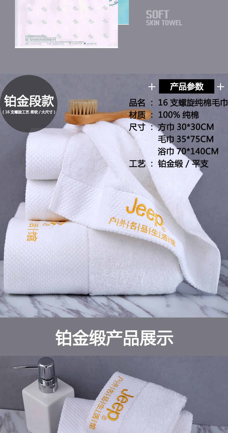ホテル布草純綿タオル角巾セット16本スパイラルプラチナ幅鍛造高級美容院刺繍ロゴ