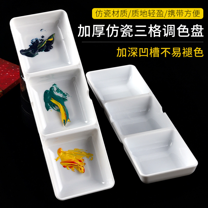 雲歌は磁器のプラスチックの長方形の3格のパレットのパレットの美術用品のアクリルの水の粉の水彩を厚くします。