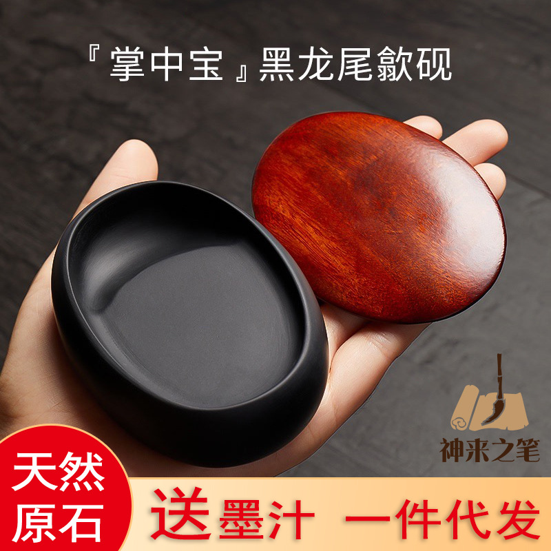 卸売り鍋硯台書道専用蓋付き二輪天然原石硯台不乾墨筆墨汁は墨を研ぐことができる