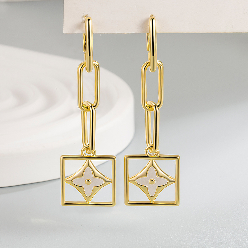 チェーンの四つ葉の草のイヤリングのフランスの長いタイプの耳のボタンの欧米の新型は貝の母の復古の耳飾りの源のメーカーを象眼します。