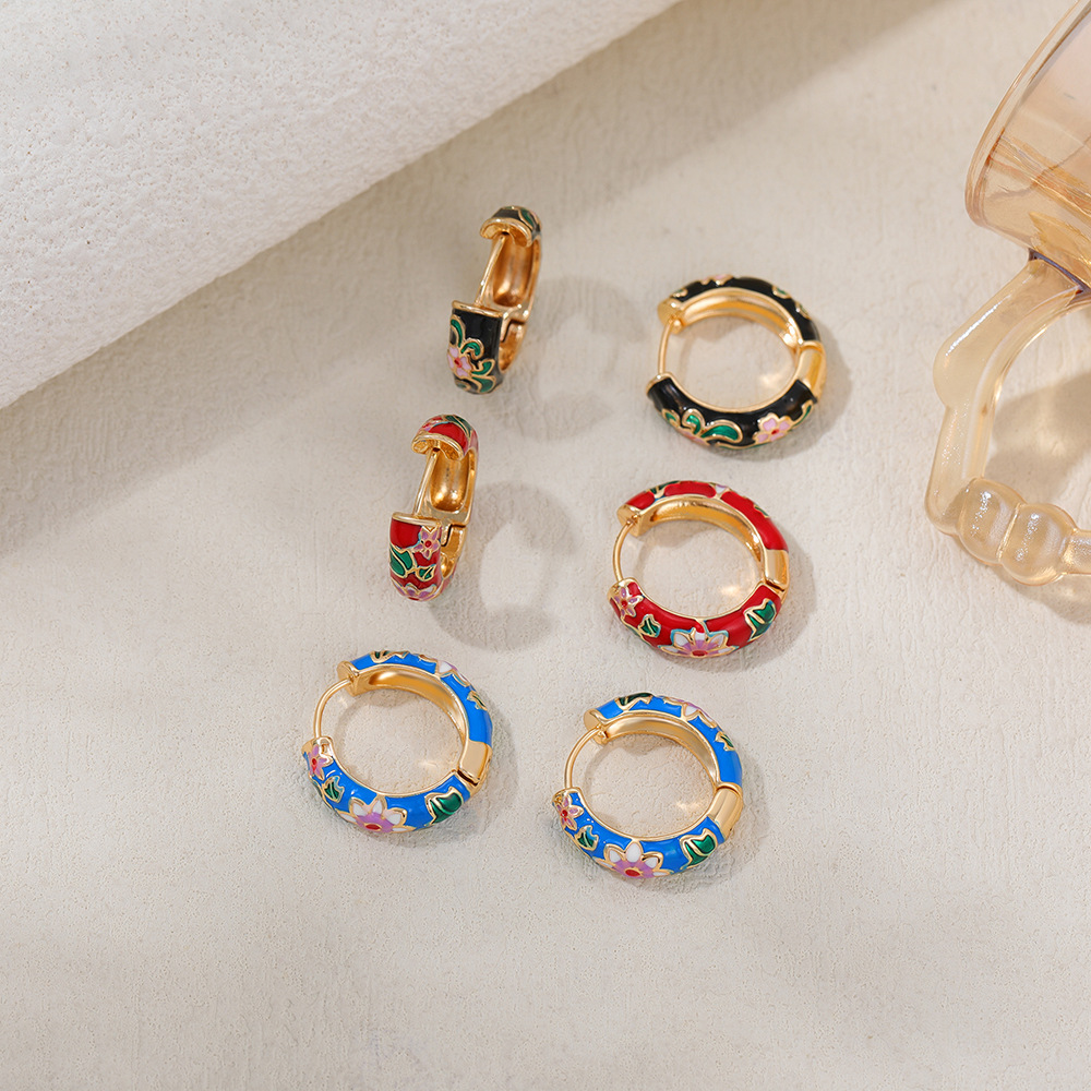 复古民族风花朵滴油耳环新中式彩色珐琅耳扣跨境时尚个性耳扣