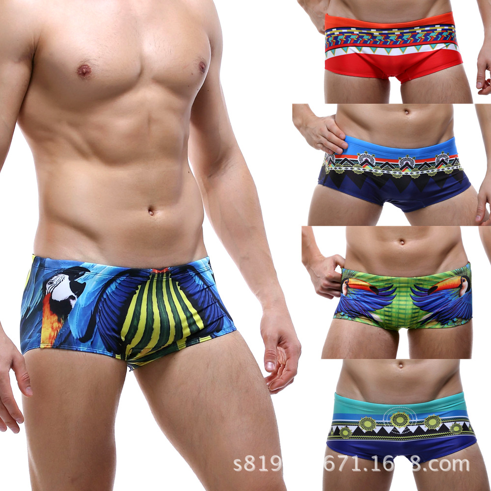 厂家直销 新款 男士泳裤 低腰三角 动物 豹纹 花朵 数码印花 欧美