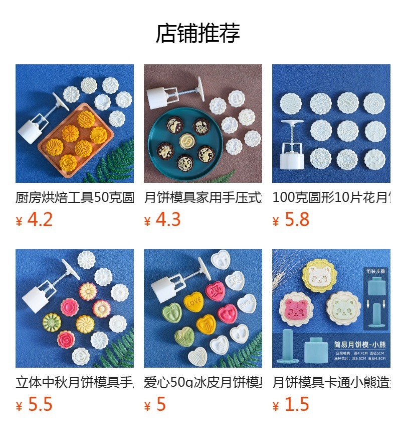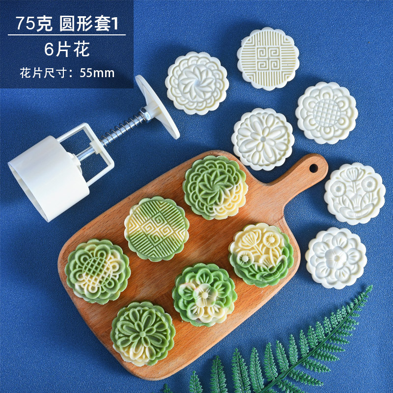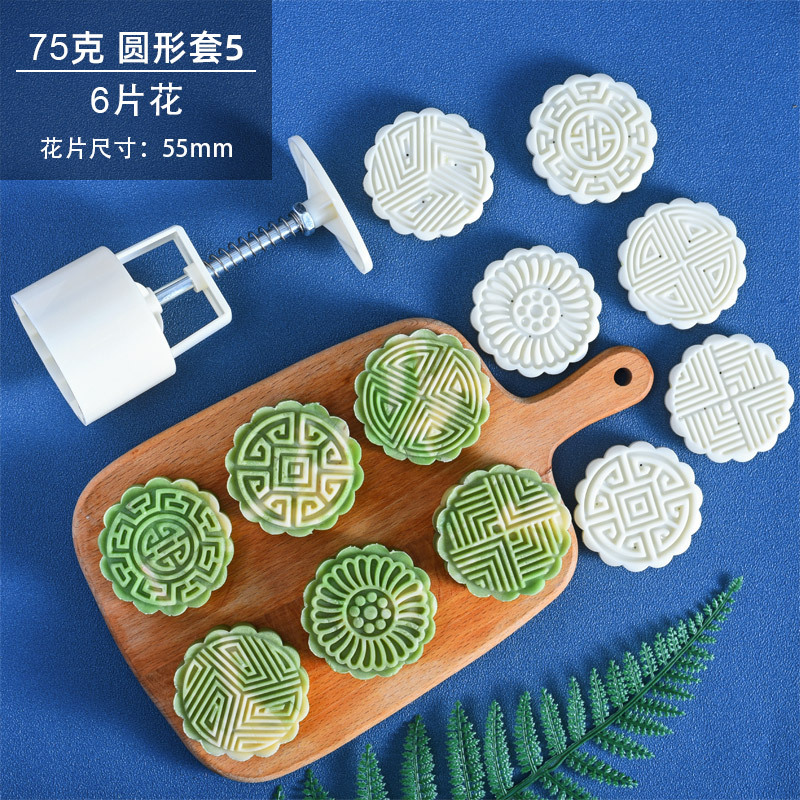 焙煎道具氷皮中秋円形緑豆餅菓子金型手押し月餅金型50g6枚セット