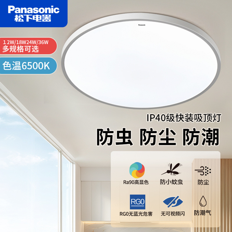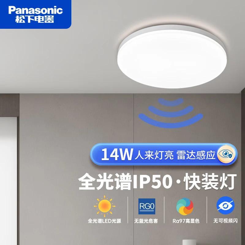 パナソニックLEDフルスペクトル三防型クイックインストール天井照明防水超薄型超高輝度寝室キッチン浴室バルコニーライト