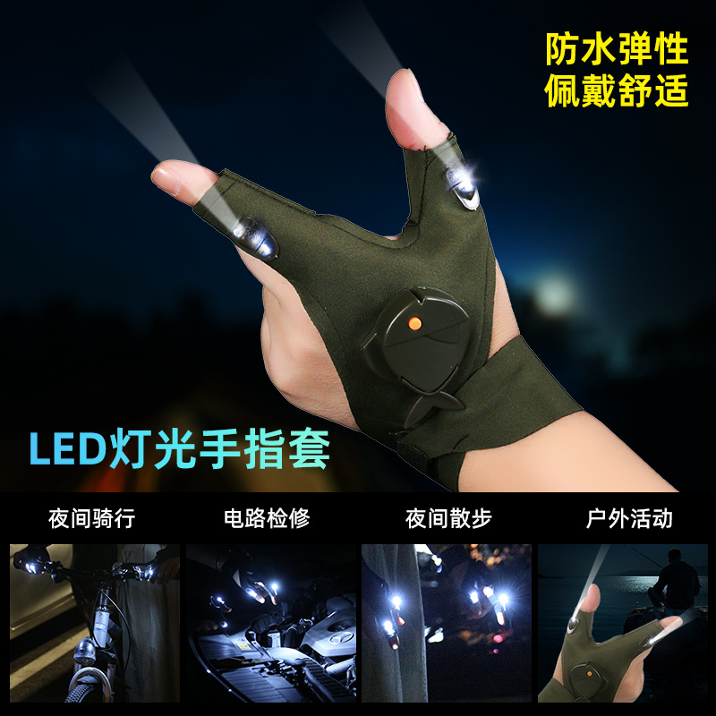 GLOVELITE手套LED手电筒露户外运动钓鱼必备手套露三指彩盒包装,需要纽扣电池联系客户,电池20颗起批