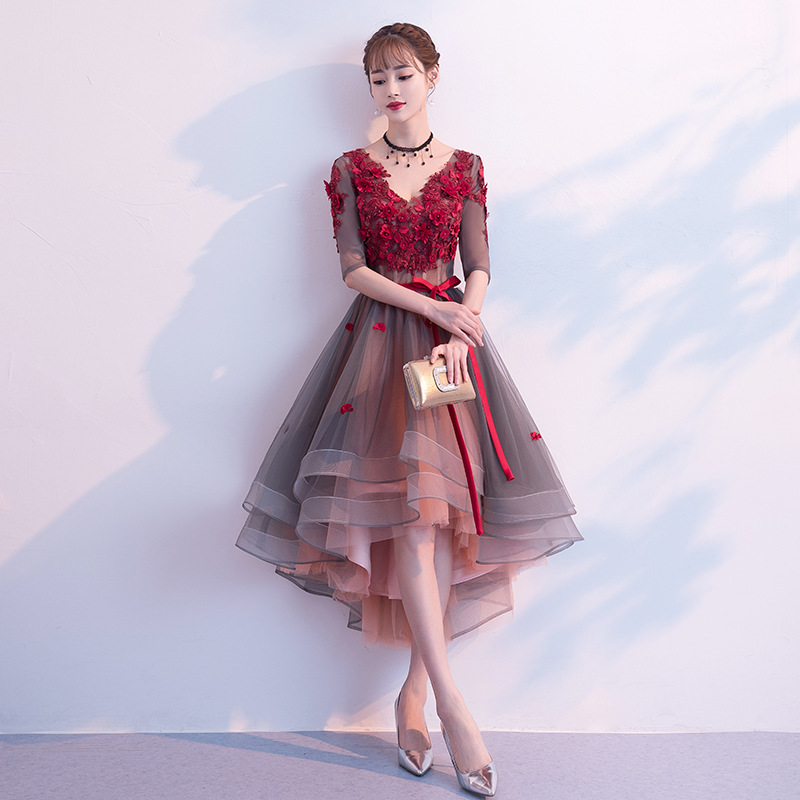 トーストウェア花嫁 2025 新しいショートスタイル威厳のあるエレガントなフロントショートバックロングセレブ宴会結婚式のイブニングドレススカート女性のための