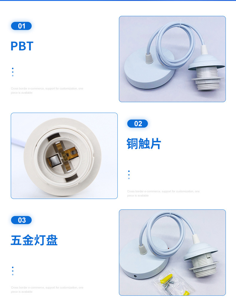 厂家直供E27灯头灯座吊线带DIY创意悬挂灯饰灯具配件