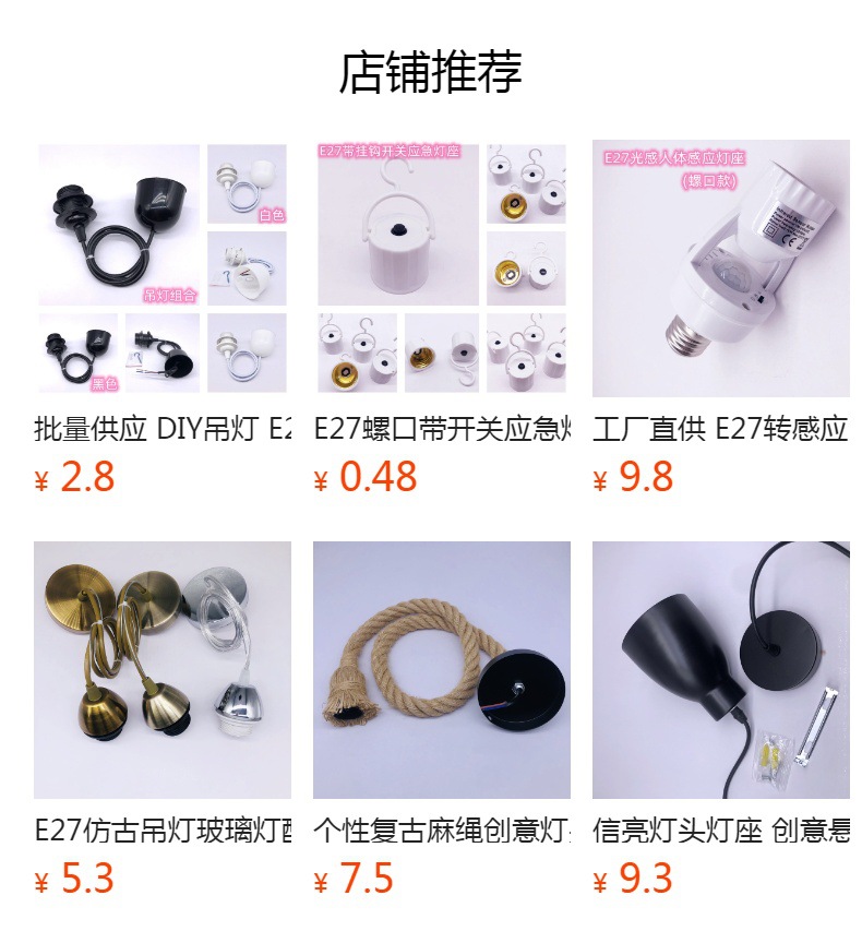 E27全歯ランプソケット吊り線半灯杯托創意diy吊り下げ式シャンデリア部品