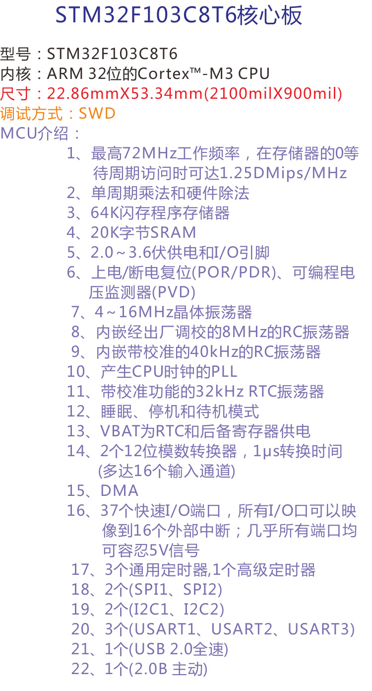 主芯片STM32F103C8T6开发板出厂时每一块均预先烧写了测试程序,上电后LED灯会均匀闪烁,并以便检测开发板是否正常工作。