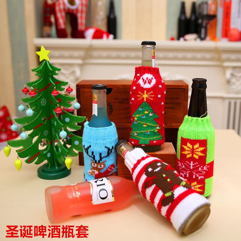 豪貝クリスマス新型クリスマス家庭用品高級ニットクリスマスビール瓶セットクリスマスビール瓶装飾