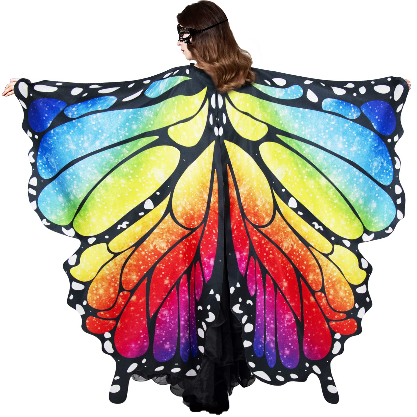 万圣新款儿童成人蝴蝶翅膀装饰蕾丝眼罩节日派对渐变彩色披风披肩