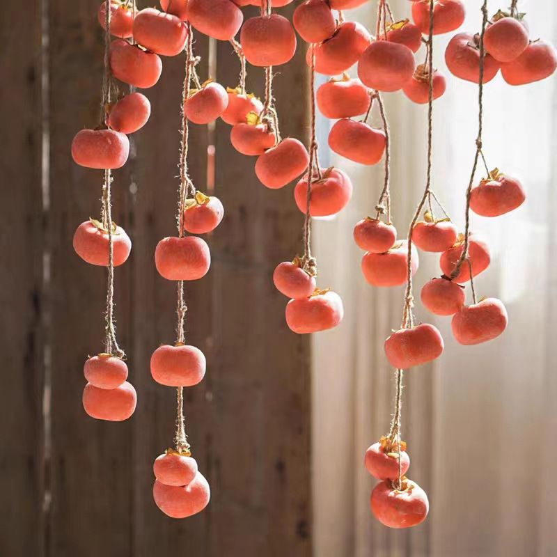 シミュレーション柿は壁にストラップをかけて柿の如意を飾って、新年のリビングレストランの壁面を飾っています。