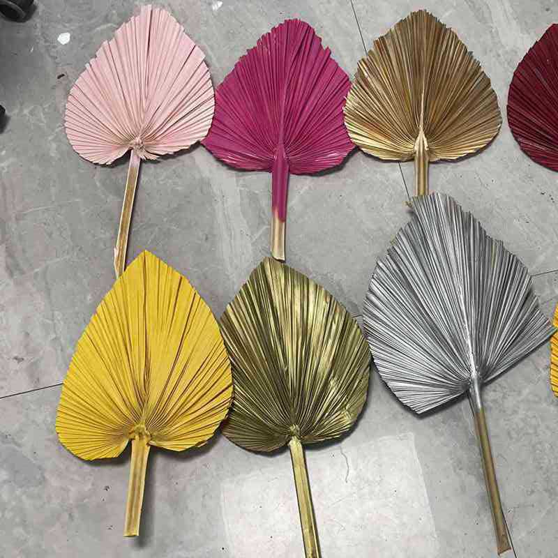 カラー扇子天然蒲扇北欧風葵葉ヤシ葉美学diy生け花材料ドライフラワー結婚式スタイル