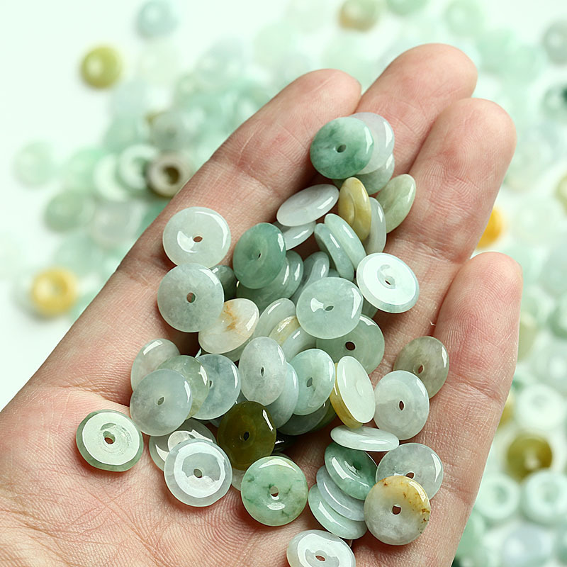 ミャンマー翡翠A品氷モチモチ種平安ボタン散珠DIYブレスレットネックレスビーズアクセサリー工場価格卸売り