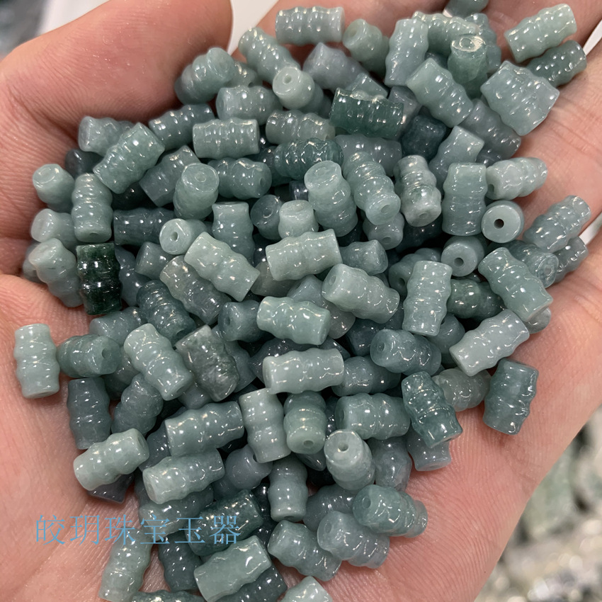 卸売り藍水翡翠竹節散件diyブレスレットストラップ部品6*9mm翡翠小竹節散珠