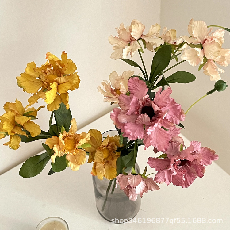 模造花卸売り3頭植毛千姿露蓮茶花陸蓮洋牡丹シャクヤク北欧シンプル気質偽花