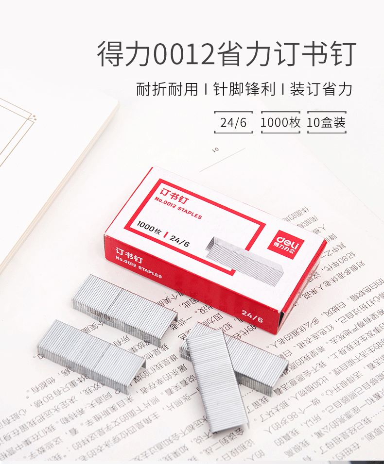 订书钉12号1000枚盒装通用型办公装订订书针24/6金属订书机钉批发