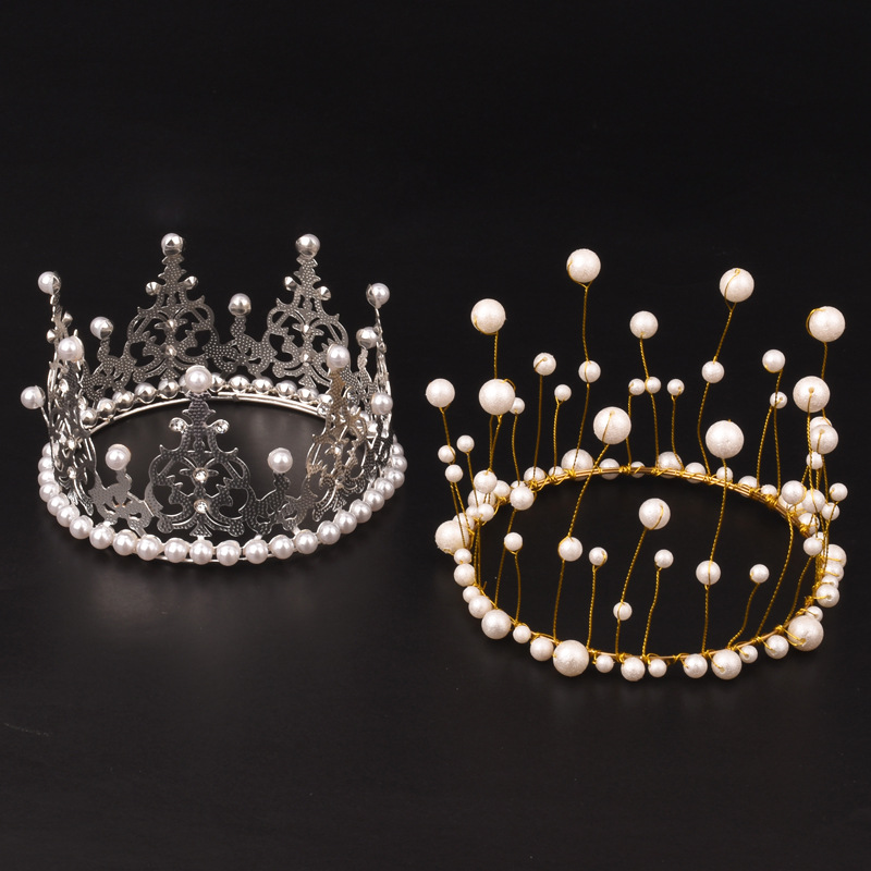 ネットで話題の合金製誕生日ケーキデコレーション、クラウンオーナメント、子供用クイーンプラグイン、パール付きミニクラウンケーキアクセサリー