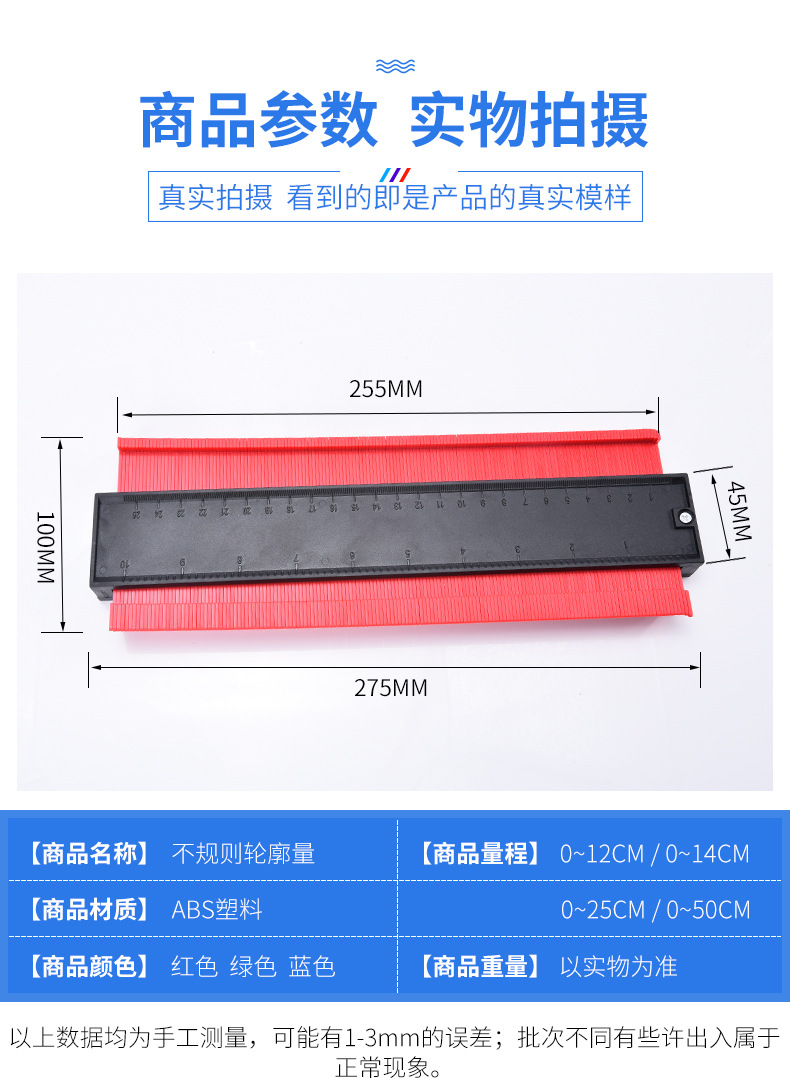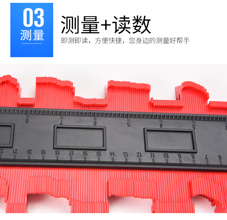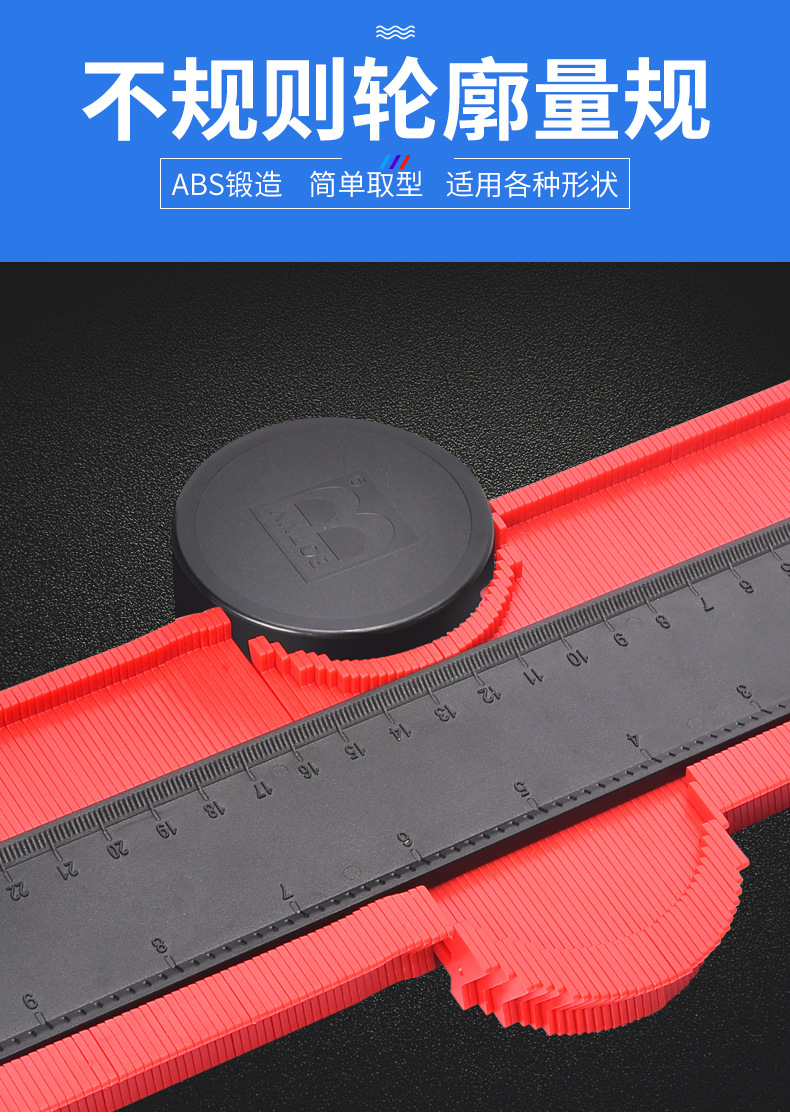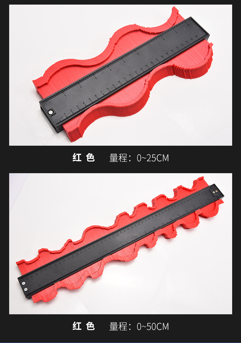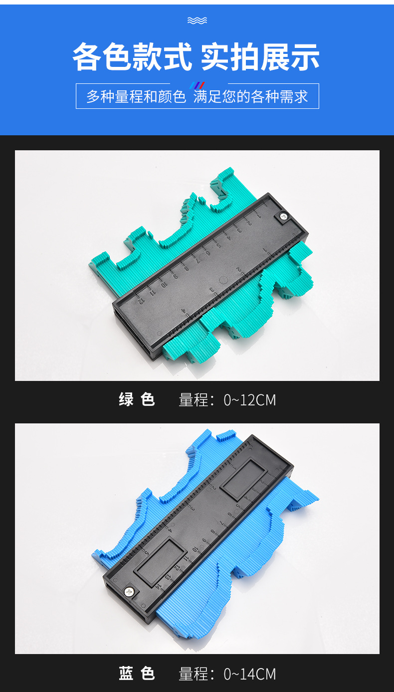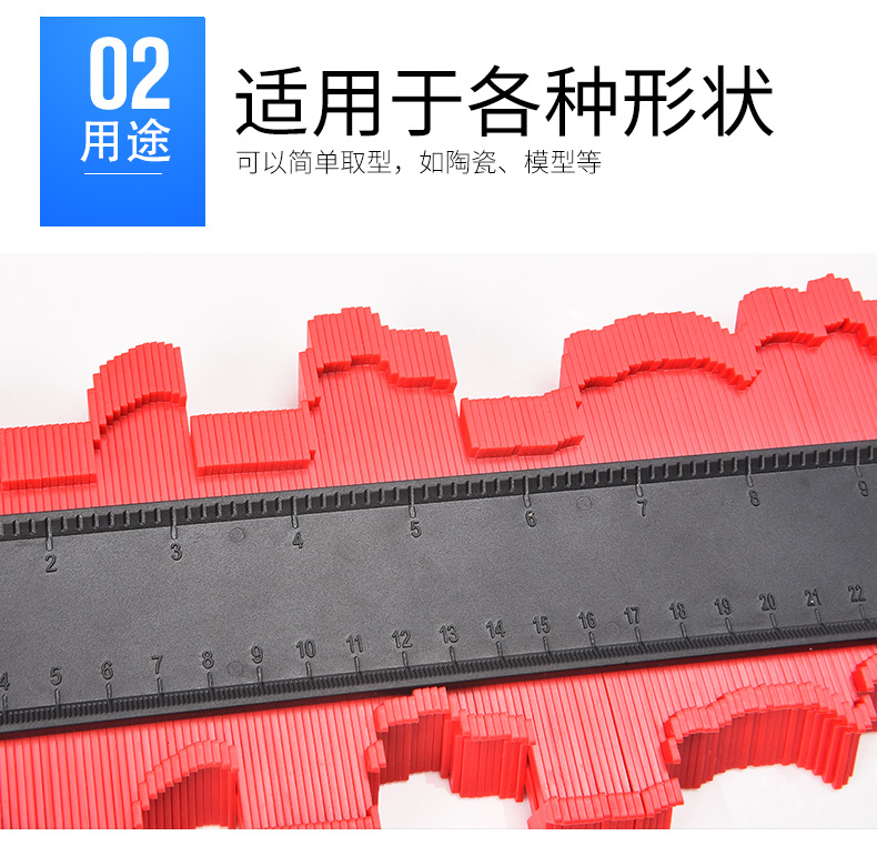 Contour gauge仿形规 有5寸(12CM)、6寸(14CM) 、10寸(25CM)三个规格,常规颜色有红、蓝、绿三个,其它颜色可以订做。