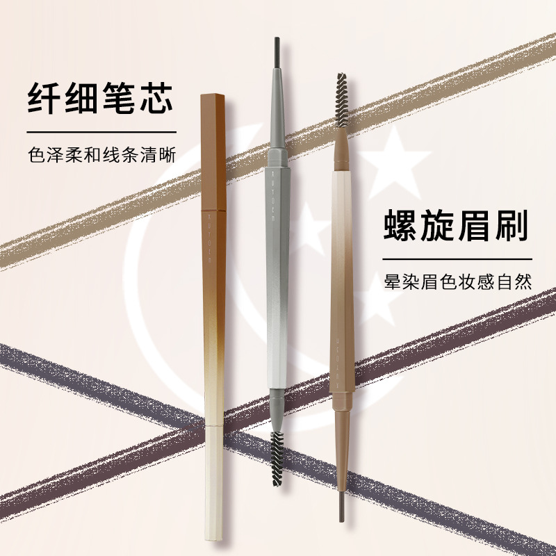 琪仕美巧笑倩西双頭自動眉筆眉ブラシ自然灰ブラウン深茶85076代件