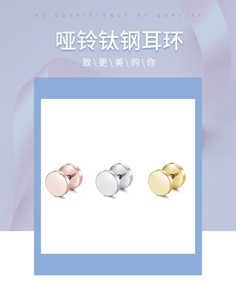 国境を越えた人気のチタン鋼イヤリング、バーベルイヤリング、人気のヒップホップロックラウンドダンベルネジ、低刺激性イヤリング
