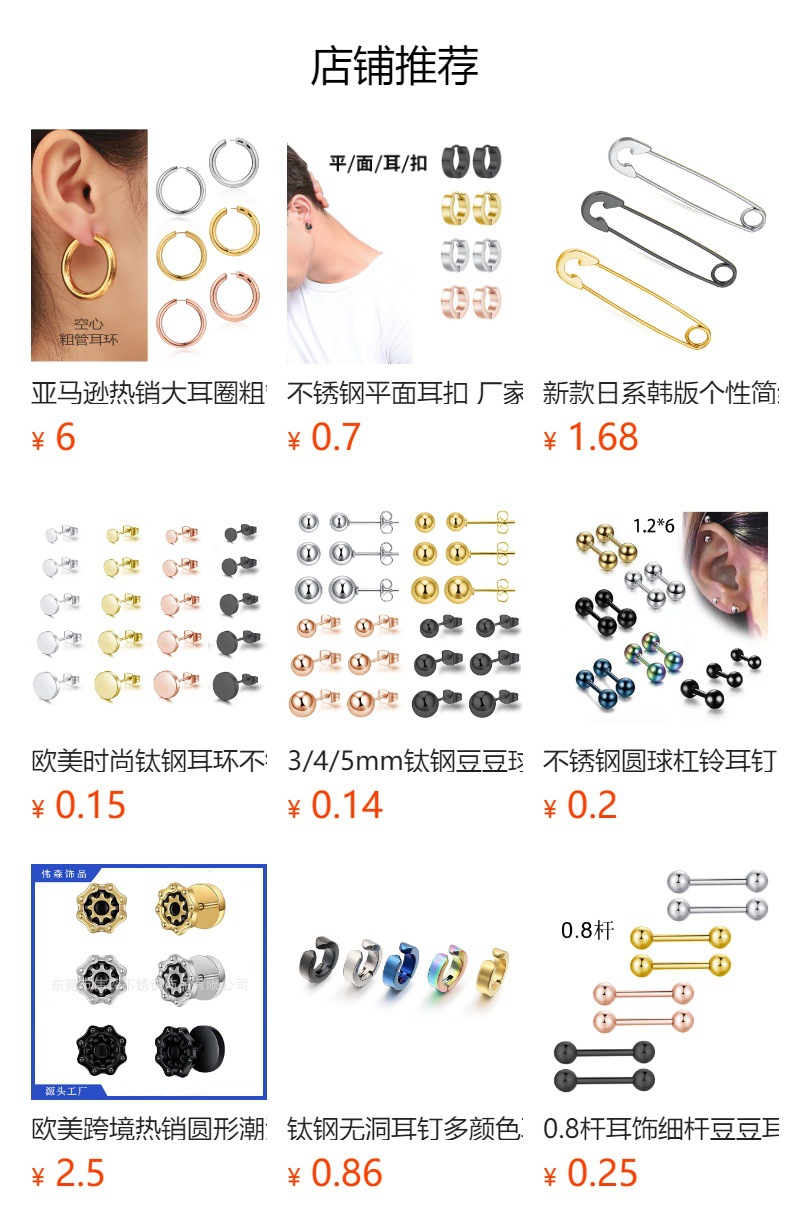 厳選ファッション男性ピアス同金円餅ダンベルチタン鋼ピアス卸売り個性クロスボーダーebayセットソース