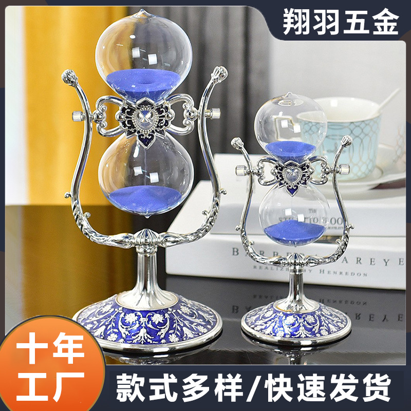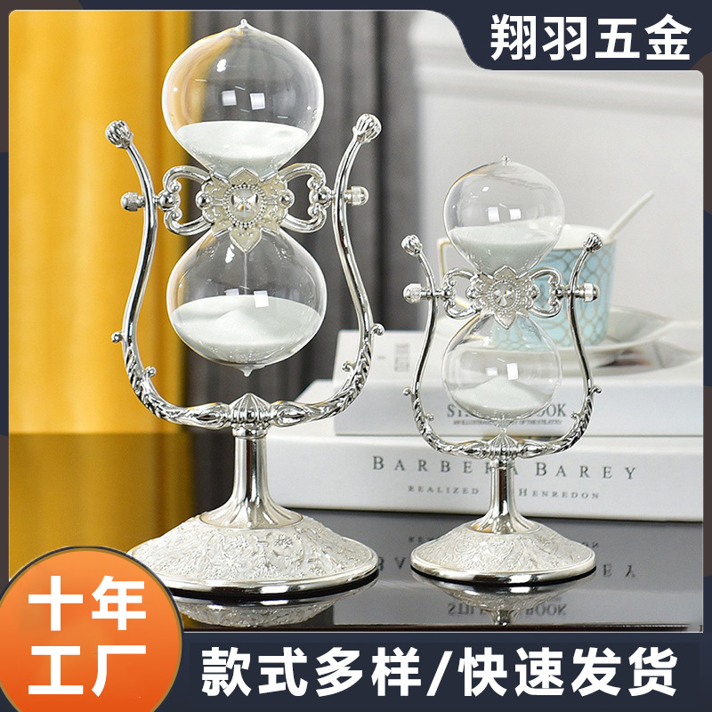 复古30分钟计时器摆件金属沙漏 心型玻璃时间摆件律计