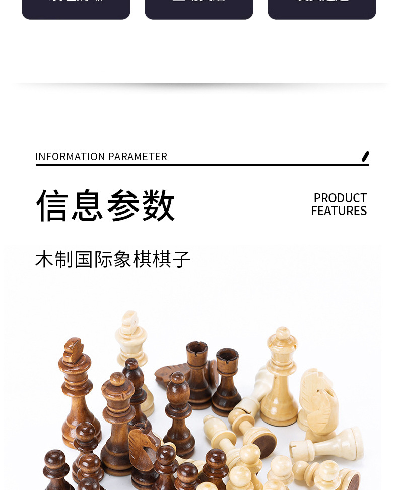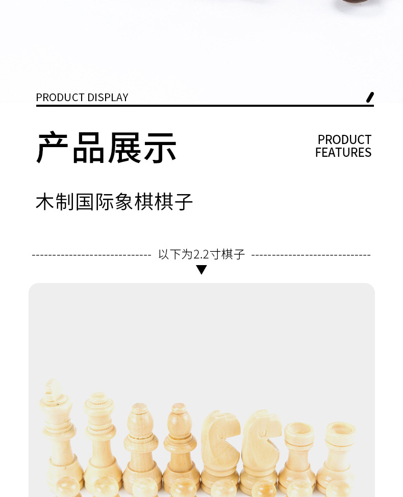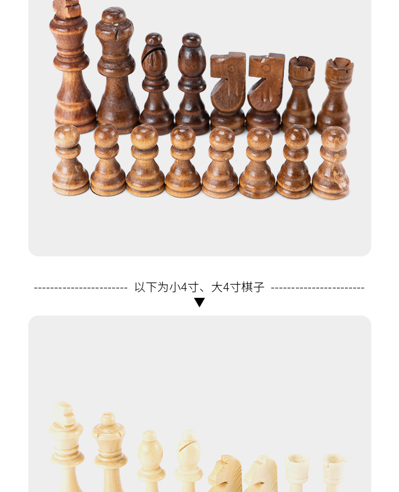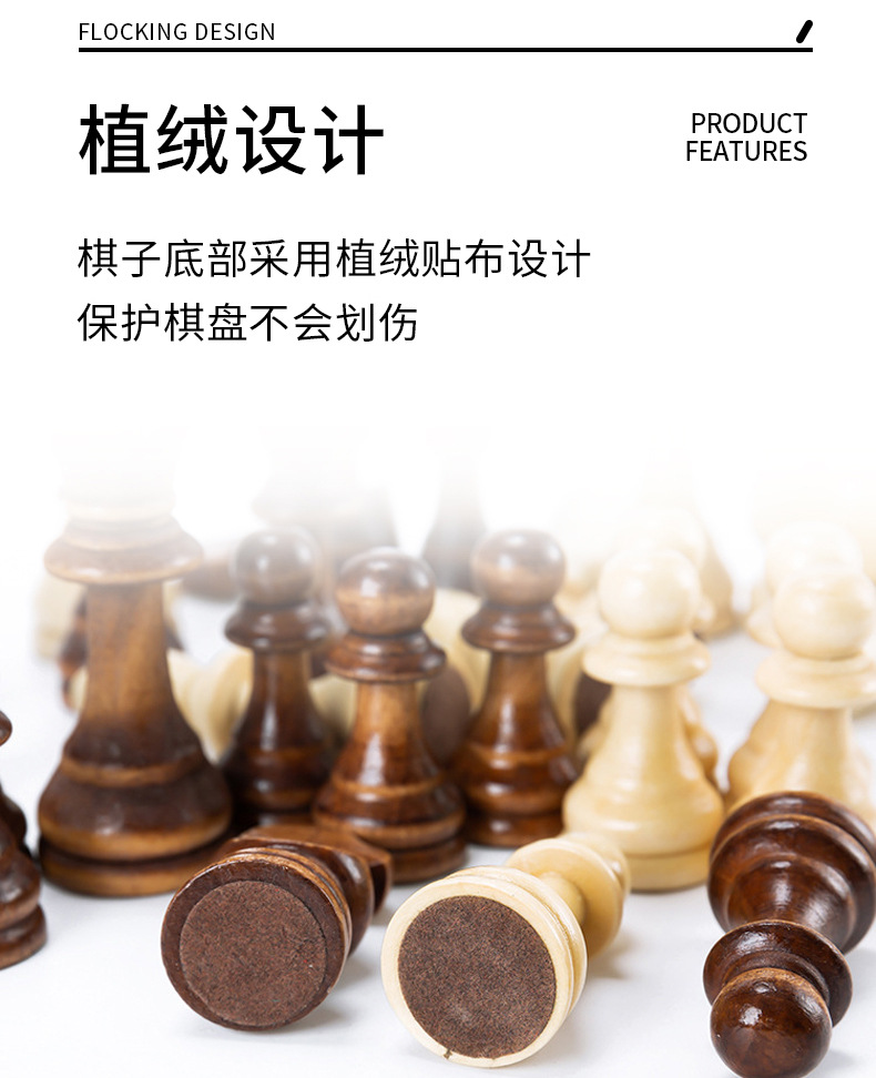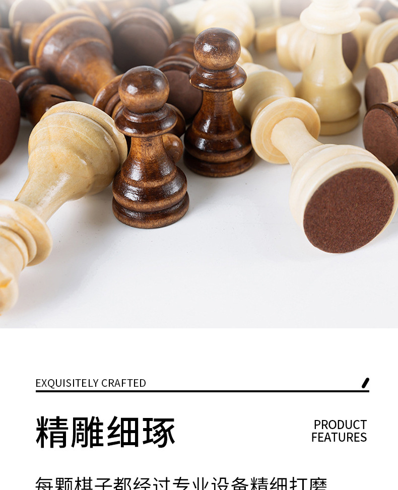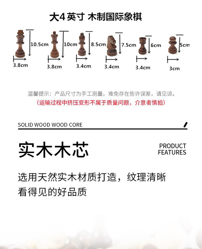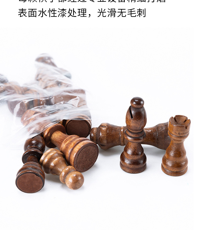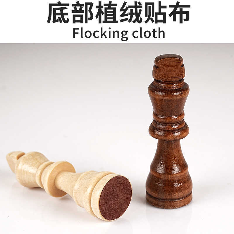 跨境电商国际象棋棋子贴绒木制实木木质32个全套黑白棋子棋盘配件