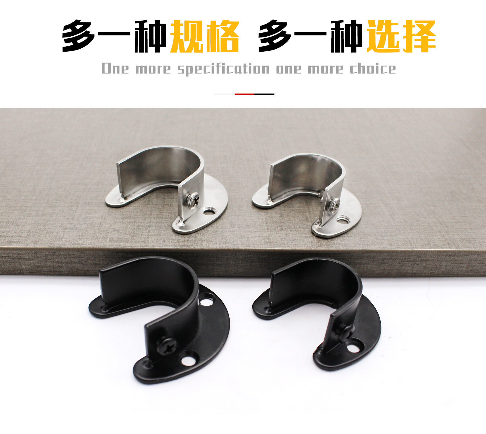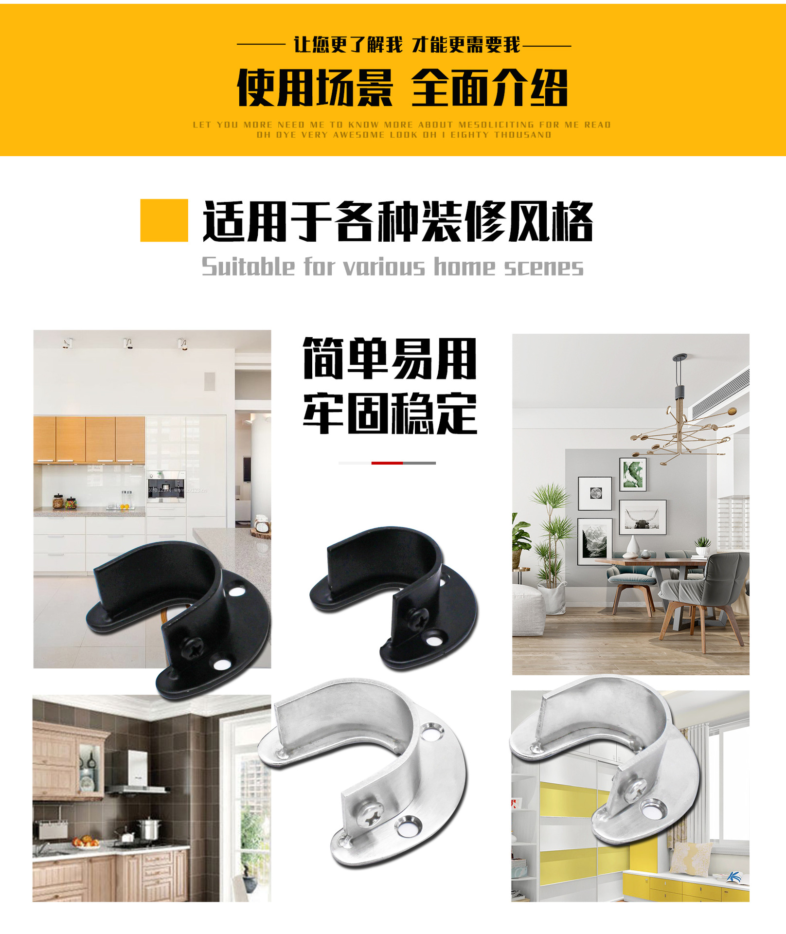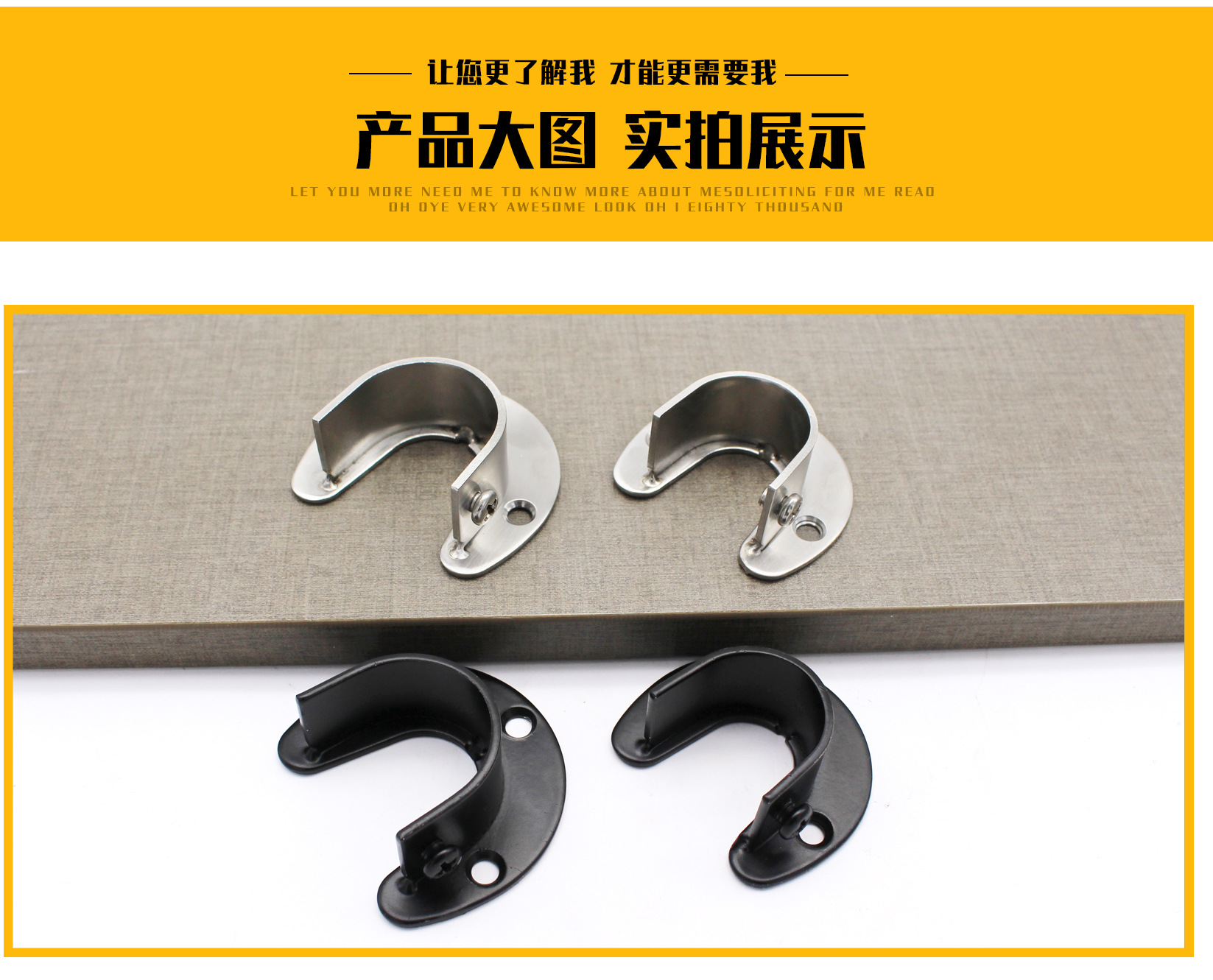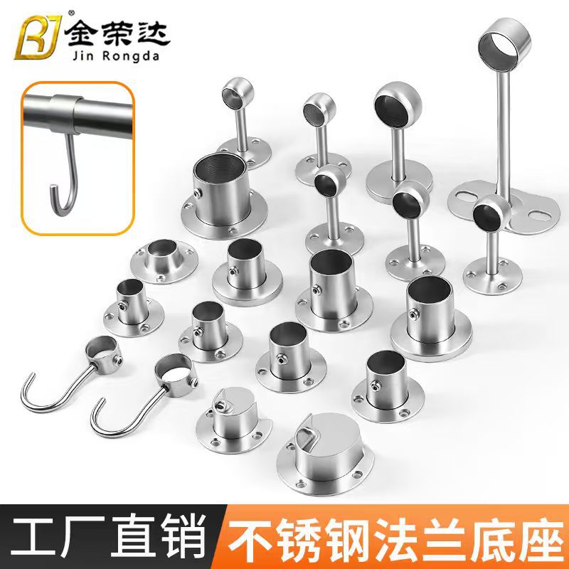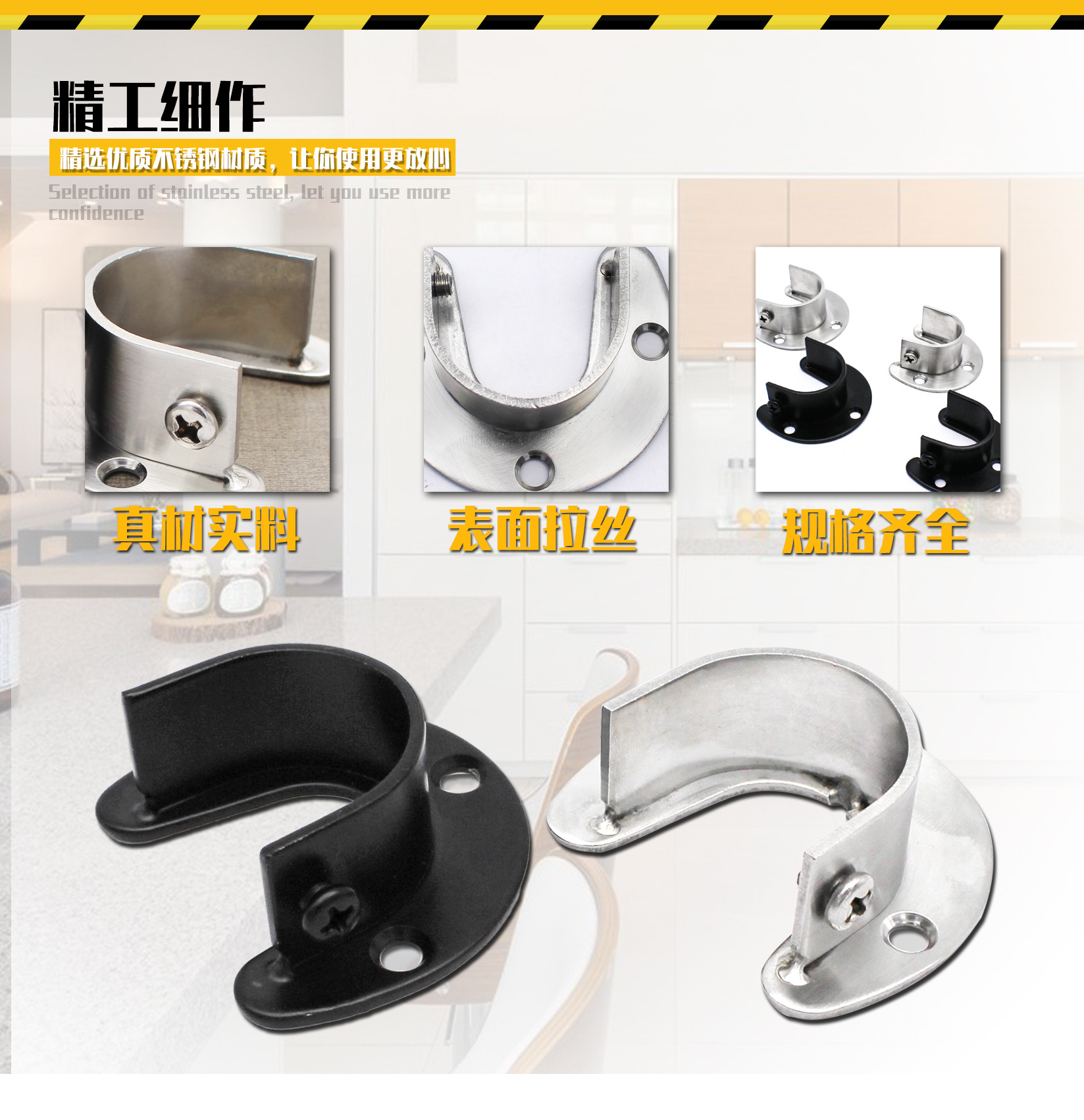 衣柜挂衣杆固定配件不锈钢法兰座衣杆托浴帘杆晾衣杆座圆管五金件