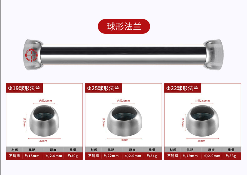 不锈钢球型法兰衣管座挂衣杆衣柜衣托开口法兰圆管晾衣杆底座法兰