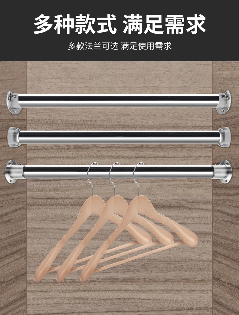 物干しロッドフランジシートステンレス鋼丸管低足ベース衣類吊り下げロッド衣類ホルダーワードローブ衣類チューブフック工場出荷時の価格