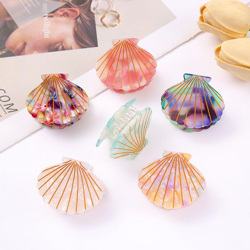 雪恒アクセサリー中号酢酸線ヘアピン花柄貝殻盤髪馬尾クリップ風呂髪飾り